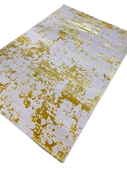 Elevate your home decor with the Golden Splash Modern Art Rug. This exquisite piece brings a unique blend of functionality and artistry to your floors, featuring a striking gold splatter on a pristine white background. The eye-catching design makes it more than just a rug—it's a piece of art that enhances any room's aesthetic.